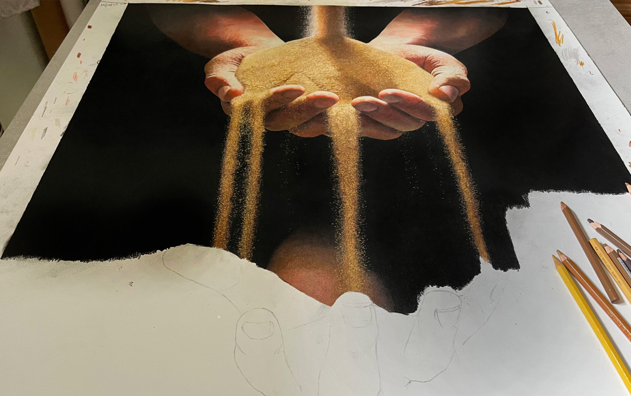 Avec Négalité, j’ai voulu créer un mot et une image pour dire l’indicible : l’égalité n’existe pas, elle est niée par les mains qui s’approprient, par les systèmes qui hiérarchisent, par l’indifférence qui oublie ceux d’en bas. Mon œuvre est une invitation à regarder là où ça fait mal, à s’abaisser pour voir les os dénudés dans le sable, à reconnaitre que l’injustice est partout, même dans l’abondance. En utilisant l’hyperréalisme, je veux que le spectateur se sente concerné, comme s’il touchait lui-même ce sable qui lui échappe. Négalité ne se contente pas de représenter l’inégalité, elle en fait une expérience. En obligeant le spectateur à s’impliquer physiquement et émotionnellement. Voir l’injustice est un choix, et que l’ignorer est une complicité.