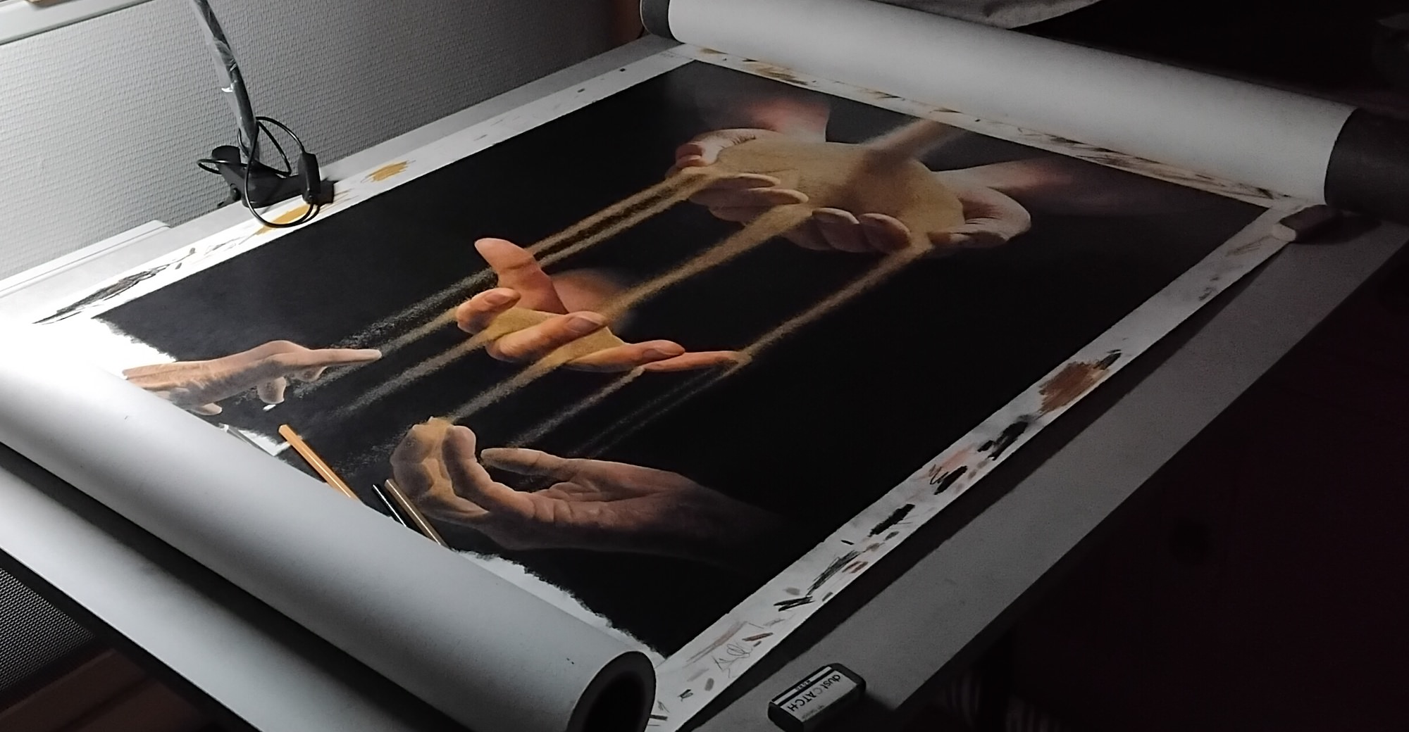 Après 4 ans de pause je reprends les crayons pour une oeuvre majeure de grand format (60 x 150 cm). C'est une allégorie sur l'égalité, ou plus exactement sur l'inexistence de l'égalité dans nos sociétés. Il n'existe pas non plus de mot pour ça, alors j'ai donné comme titre un néologisme mélangeant les mots Négation et Égalité donnant : "Négalité".