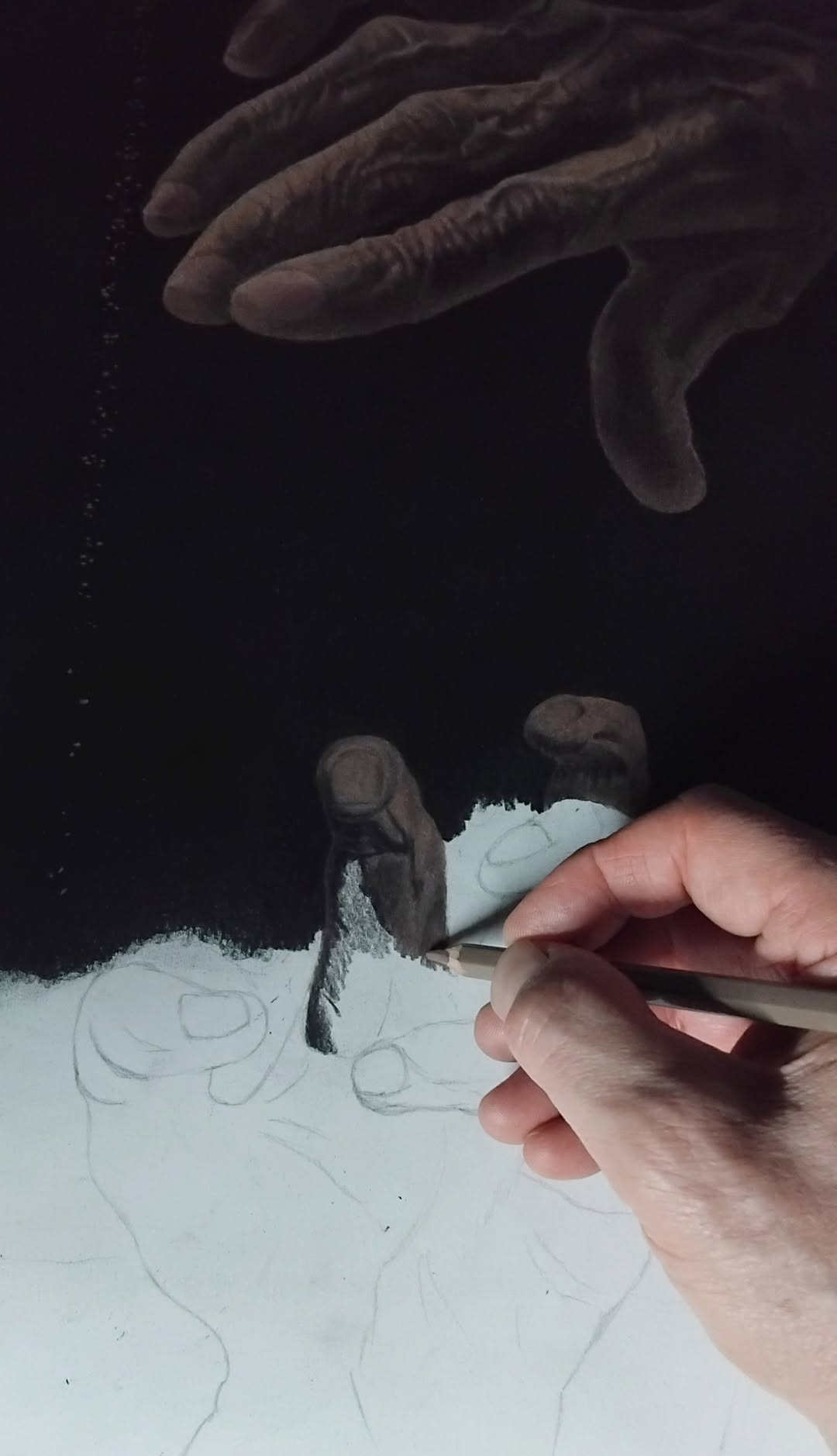 Cette main est aussi particulière en soi pour une autre raison que je dévoilerai une fois l'œuvre terminée (si je n'oublie pas...).