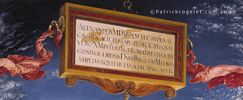 "Alexandre le Grand vainc le dernier Darius, après que dans les rangs des persans 100 000 hommes de la piétaille et plus de 10 000 cavaliers aient été tués. Le roi Darius et 1000 cavaliers seulement purent se sauver en prenant la fuite, tandis que sa mère, son épouse et ses enfants furent faits prisonniers"