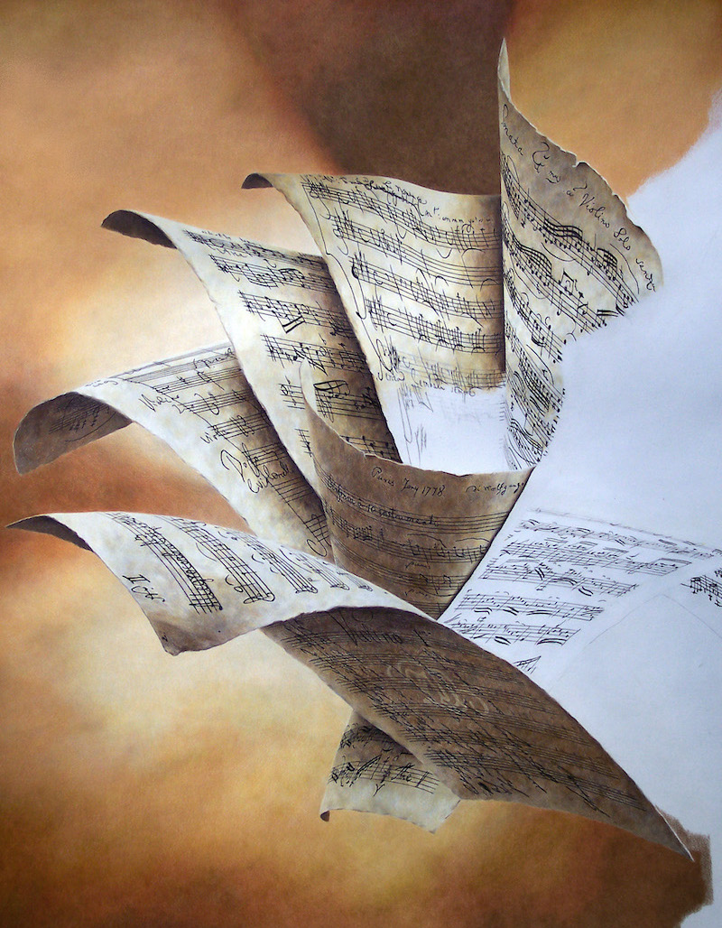 La toile "Compositions", plus petite que "Opus 44", reprend les partitions manuscrites pour éléments visuels. L'étape par étape de sa réalisation préserve le suspens quant à la signification de la... composition.