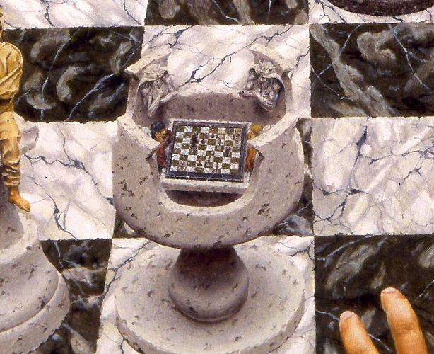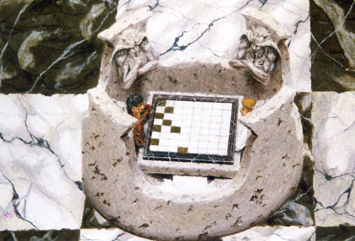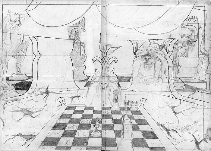 « Le Roi fragile, le Fou oblique, la Reine acharnée, la Tour directe, le Pion malin, ne savent pas que la main désignée du joueur gouverne leur destin. Mais... le joueur est aussi prisonnier. Dieu fait se mouvoir le joueur et celui-ci la pièce »