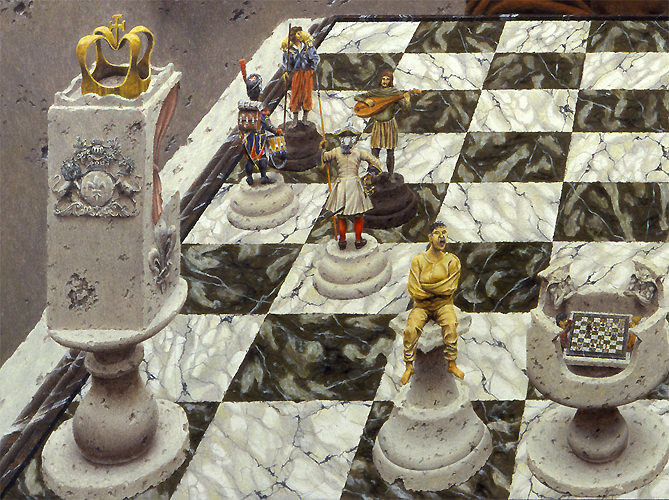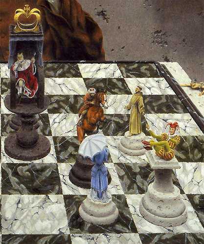 (Sans vouloir contredire Borgès, je préfèrerais parler d'un Roi acharné et d'une Reine fragile mais bon...!)