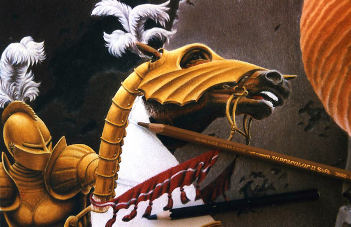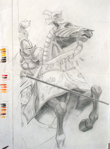 C'est probablement le dessin le plus complexe que Patrick ait créé. Je ne prends pas en compte l'extrême difficulté de « La Bataille d'Alexandre » puisqu'il s'agissait d'une reproduction, un cas d'école grandiose.